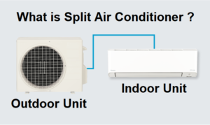 A split AC has an indoor unit for cooling and an outdoor unit for heat dissipation, connected by refrigerant pipes. It’s ductless, energy-efficient, and allows temperature control in multiple rooms.